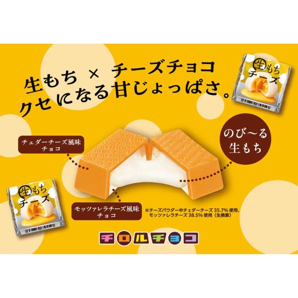 もちもち食感の生もちと甘じょっぱい2種類のチーズ風味チョコが合わさることで