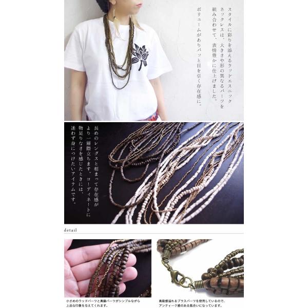 エスニック ロング ネックレス 8連 ウッドビーズ アジアン 雑貨(1)