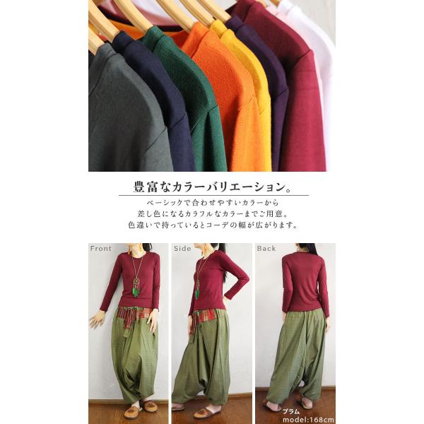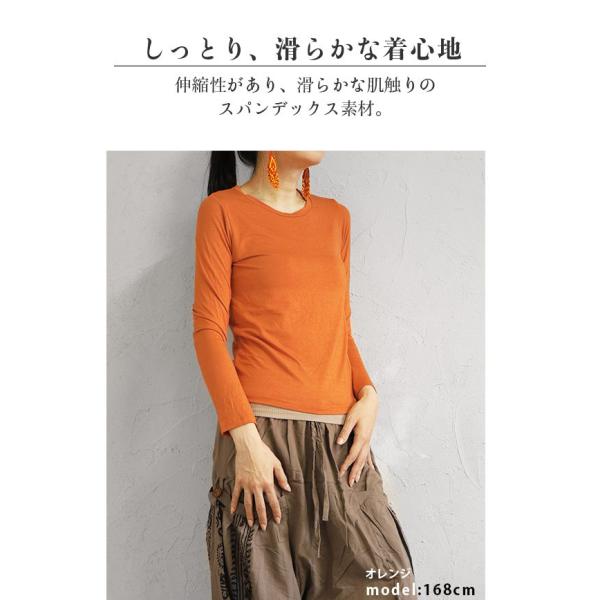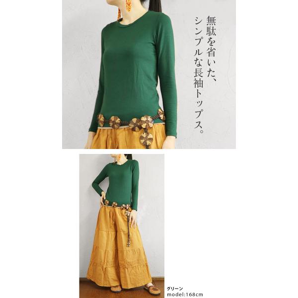 エスニック Tシャツ カットソー ロンT 長袖 無地 フィット タイト 重ね着 インナー レイヤー ファッション レディース アジアン シンプル (1.5)