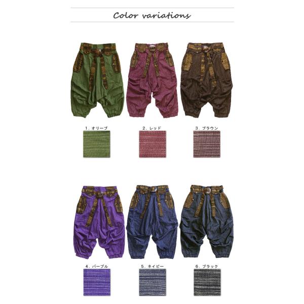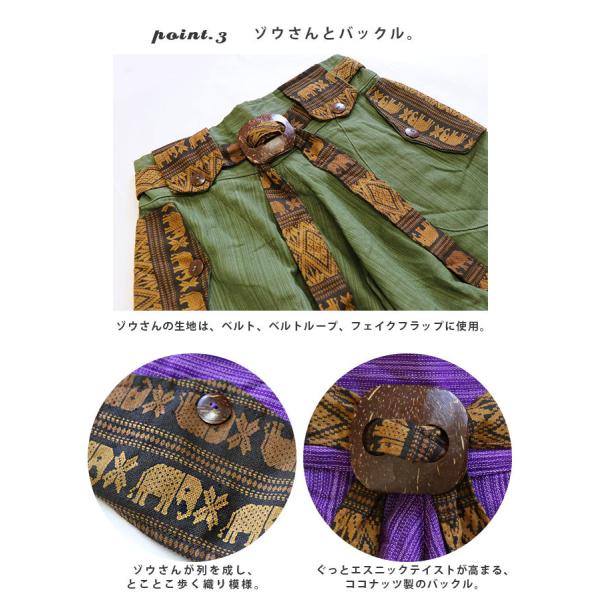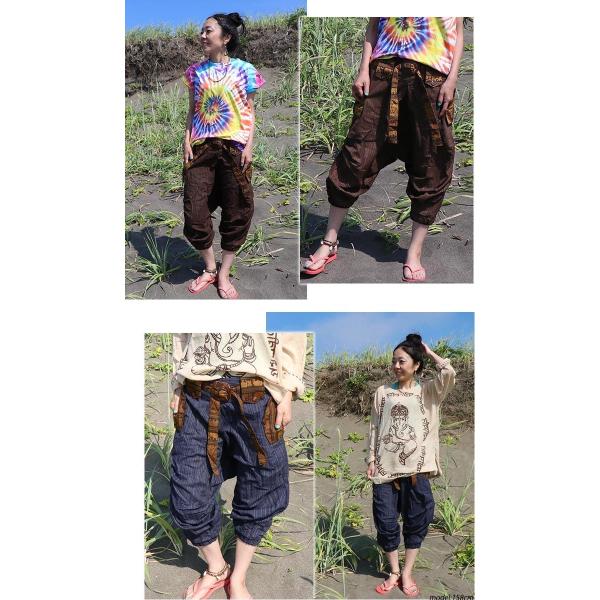 送料無料 エスニック サルエルパンツ アラジン クロップドパンツ ストライプ ココナッツ ベルト バックル ゾウさん 春 夏 秋 レジャー 運動 (3)