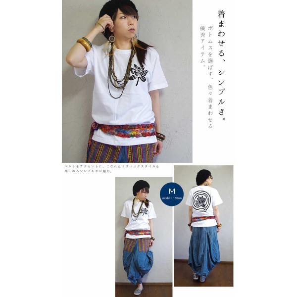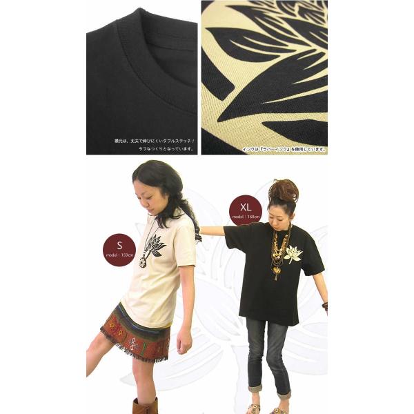 エスニック Tシャツ アジアン 半袖 ロータス 蓮 ハス 花 ファッション レディース メンズ 男女兼用 ゆったり 大きいサイズ プリント (1.5)
