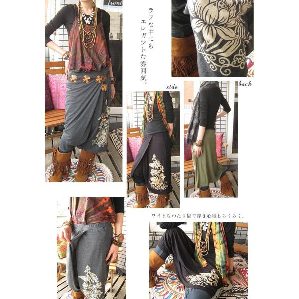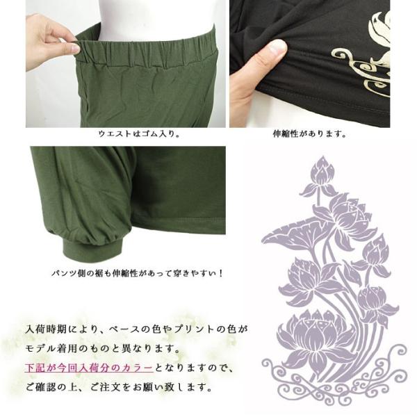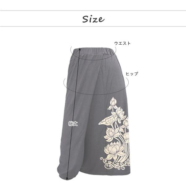エスニック パンツ ラップ ワイドパンツ サルエル ロータス 蓮 はす ハス 花柄 ファッション レディース アジアン スカーチョ スカンツ スカート風 (3)