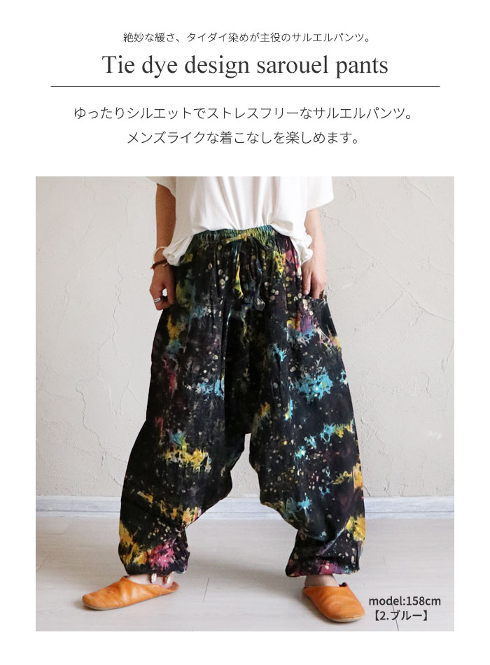 【キーワード】 [ エスニック エスニックファッション パンツ ボトムス ボトム ズボン ロングパンツ サルエルパンツ リラックスパンツ イージーパンツ リラパン アジアン 山ガール ファッション 衣装 10分丈 ゆったり 体型カバー カジュアル アンティーク レトロ ビンテージ ヴィンテージ 個性派 派手 ウエスト ゴム紐 ひも入り 裾ゴム 足首 ゴム サイドポケット ポケット 裾ゴム 足首 ゴム タイダイ染め タイダイ柄 タイダイ模様 レディース メンズ 男性 ユニセックス 男女兼用 大きいサイズ ルーズ Sサイズ Mサイズ Lサイズ フリーサイズ 室内用 屋内 部屋 おうち時間 外出用 お出かけ 普段使い デイリー リラックスタイム 休日 通勤 通学 ダンス ヒップホップ フェス イベント ライブ お祭り 衣装 コスチューム 綿100% コットン100% ウォッシュ加工 色落ち 古着風 ブラック 黒 ブルー 青 イエロー 黄色 パープル 紫 限定 ハンドメイド 手作り カラバリ 色違い カラー 春 夏 秋 冬 オールシーズン メール便 20代 30代 40代 50代 60代 マーブルマーケット まーぶるまーけっと ]