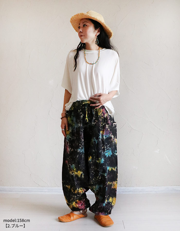 パンツ サルエルパンツ エスニック タイダイ染め ワイドパンツ イージーパンツ レディース メンズ ファッション 男女兼用 ユニセックス カジュアル ペンキ(3)