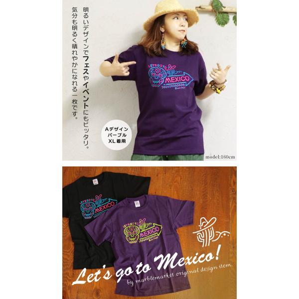 Tシャツ 半袖 エスニック ネオン風 メキシカンスカル カラベラ カットソー トップス 綿100% ポップ アジアン ファッション 蛍光 メンズ レディース(1.5)