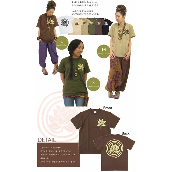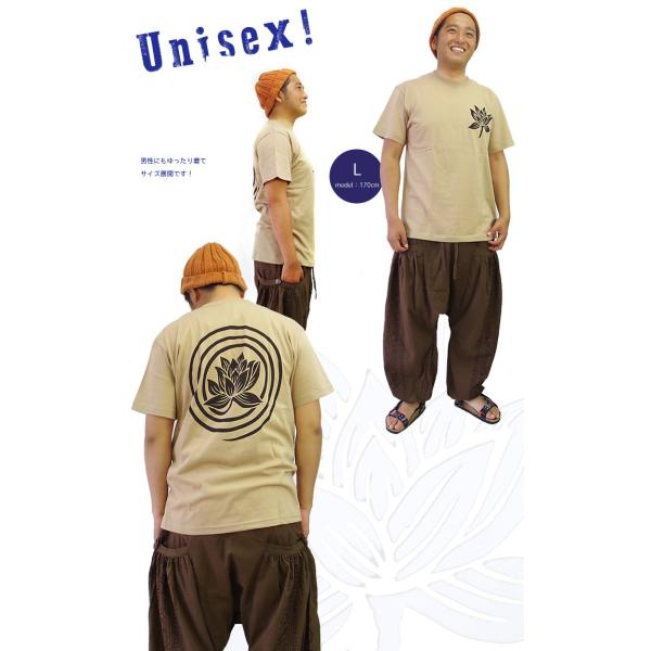エスニック Tシャツ 半袖 プリント ぐるぐる ロータス 蓮柄 アジアン ハス 男女兼用 ユニセックス メンズ 大きいサイズ (1.5)