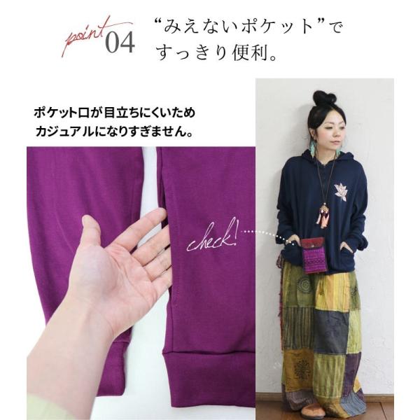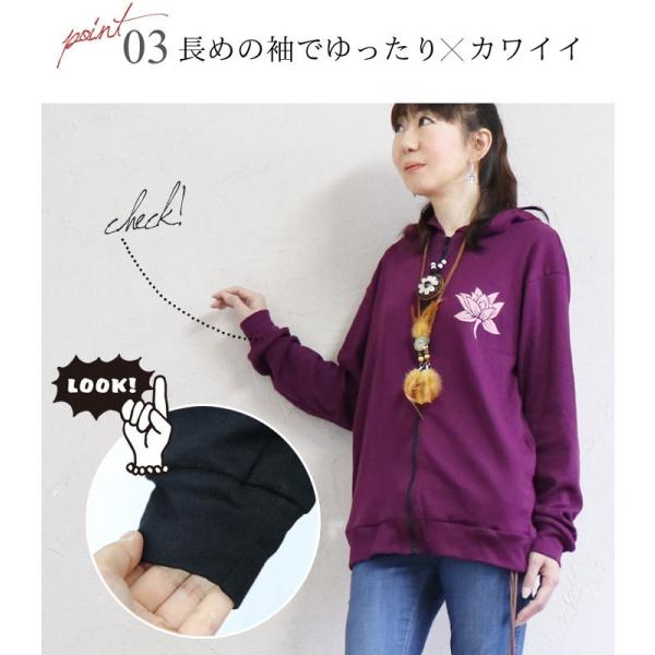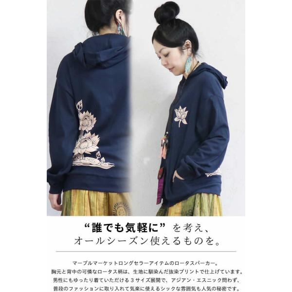 エスニック ジップアップ パーカー 長袖 ロータス アジアン 蓮 ハス フード付 コットン 綿 ゆったり 大きめ 大きいサイズ カラフル(3)