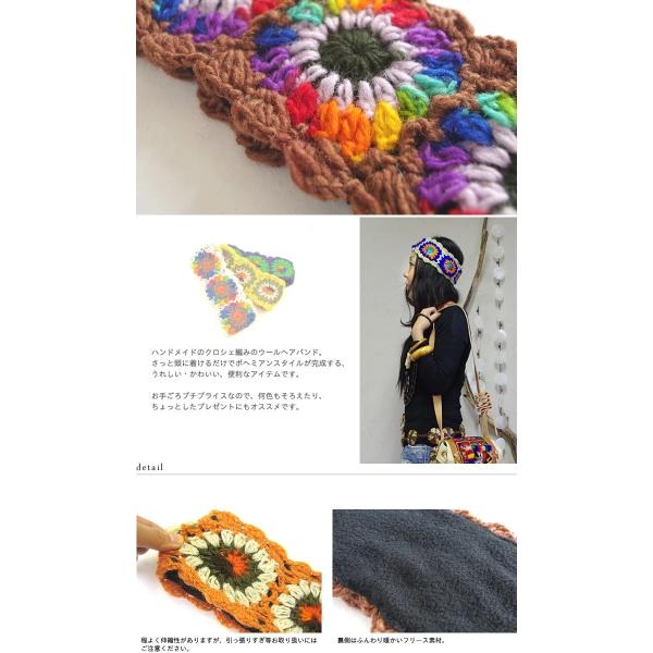 エスニック ヘアバンド ヘアターバン ヘアアクセサリー ヘッドバンド ウール クロシェ 手編み 裏フリース ボヘミアン 雑貨 暖かい 山ガール (2)
