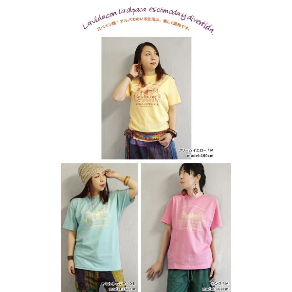 エスニック Tシャツ カットソー トップス 半袖 アルパカ アニマル ファッション フェス メンズ レディース 男女兼用 ゆったり (1.5)