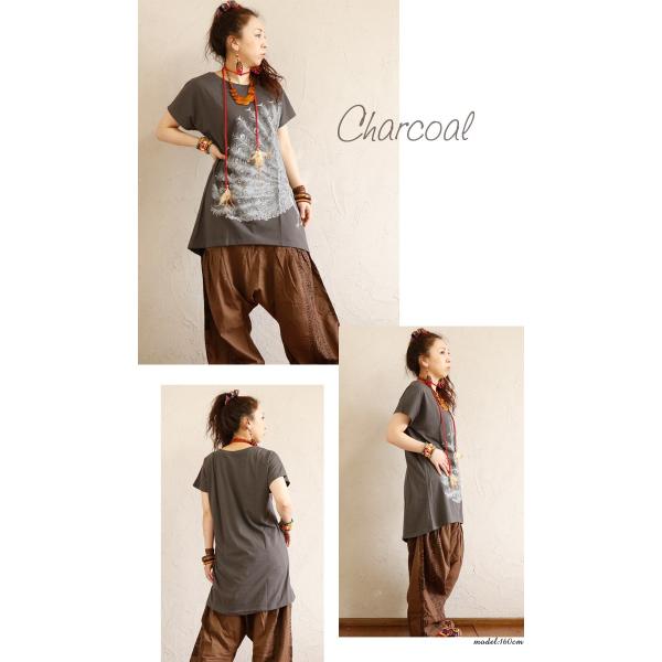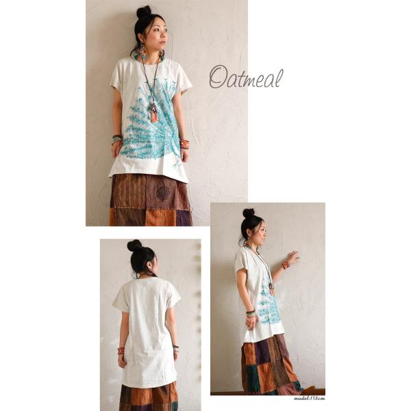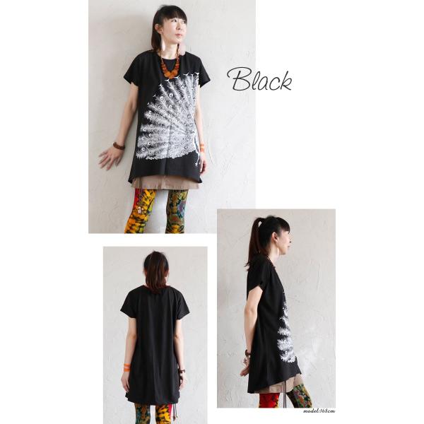 エスニック ワンピース ピーコック ドルマン ゆったり 大きいサイズ Tシャツ アジアン 服 オリジナル ファッション 孔雀 鳥 春 夏 (1.5)