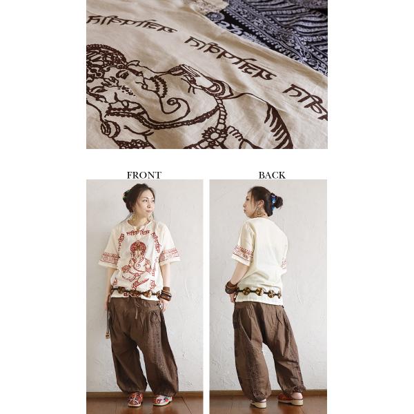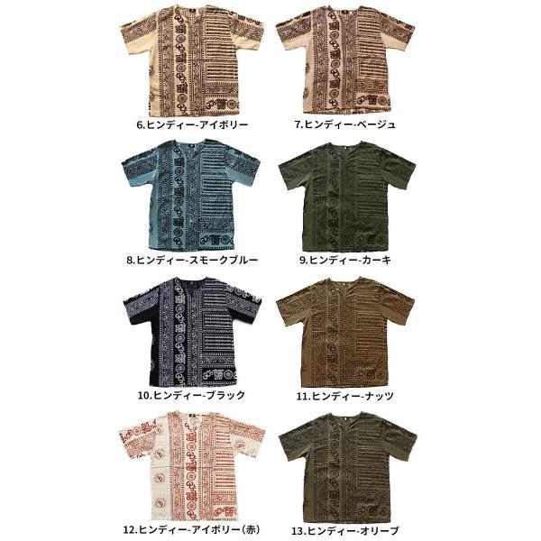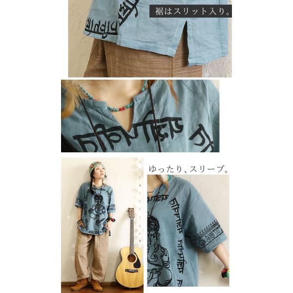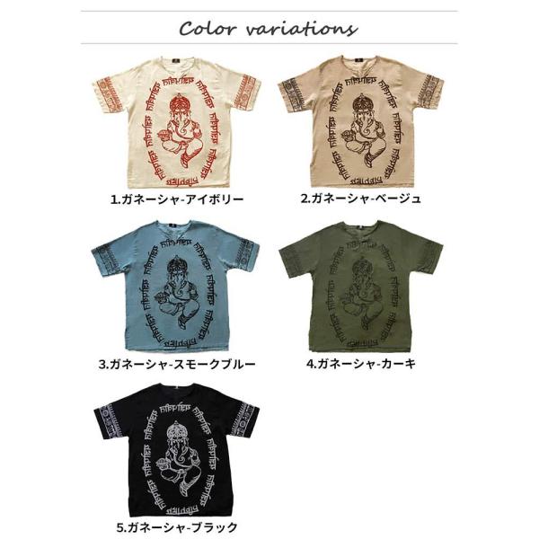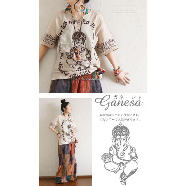 エスニック 半袖 スキッパー シャツ トップス ガネーシャ ヒンディー レディース メンズ ユニセックス アジアン クルタ キーネック (1)
