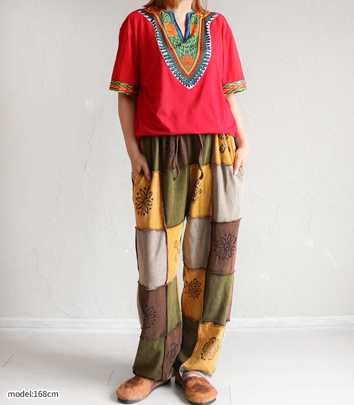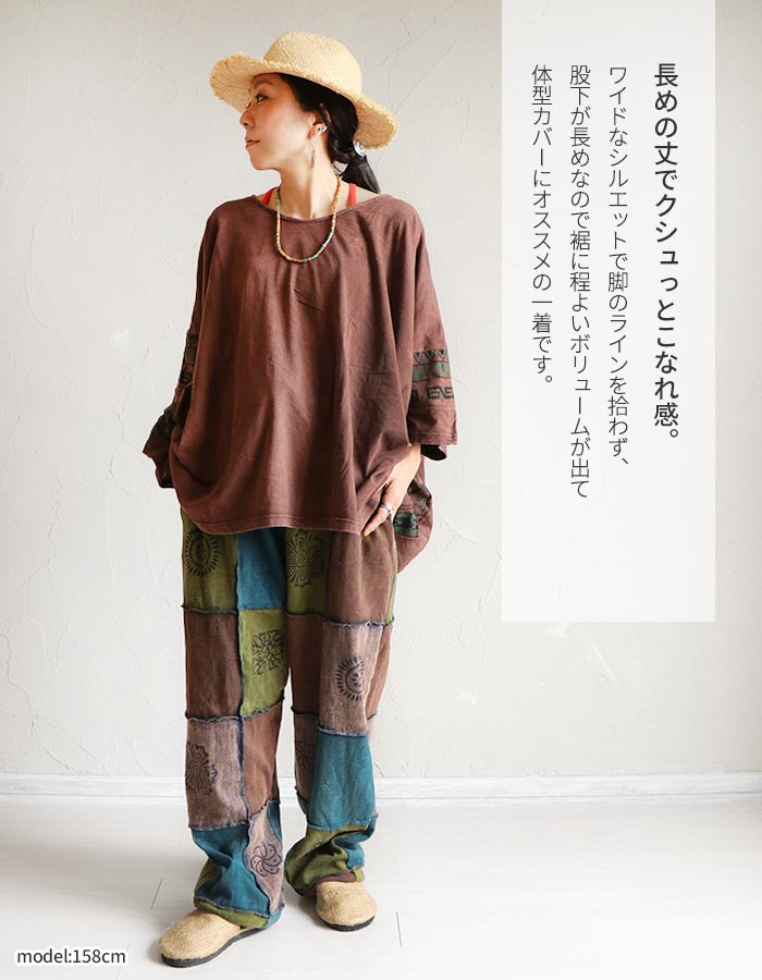 パンツ アラジンパンツ サルエルパンツ ロング ズボン ボトムス エスニック 山ガール パッチワーク レディース メンズ 男女兼用 ユニセックス ファッション