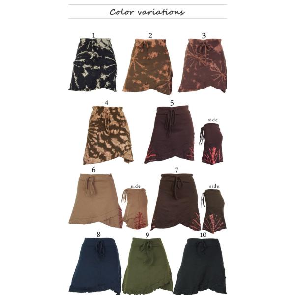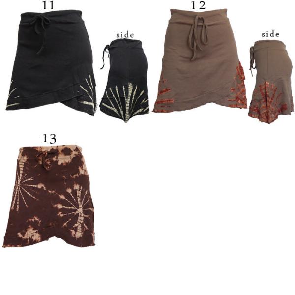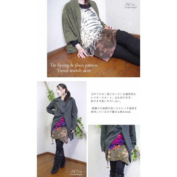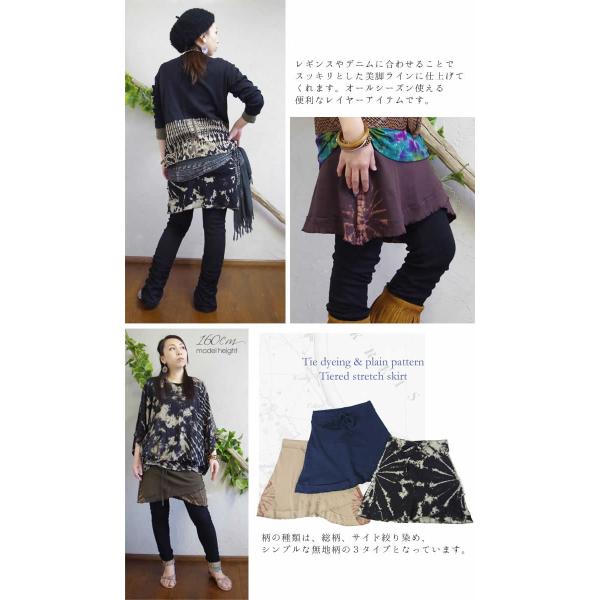 ミニスカート エスニック 山ガール タイダイ染め 無地 ティアード アシンメトリー アシメ 変形 フレア フリル ファッション レディース アジアン(1.5)