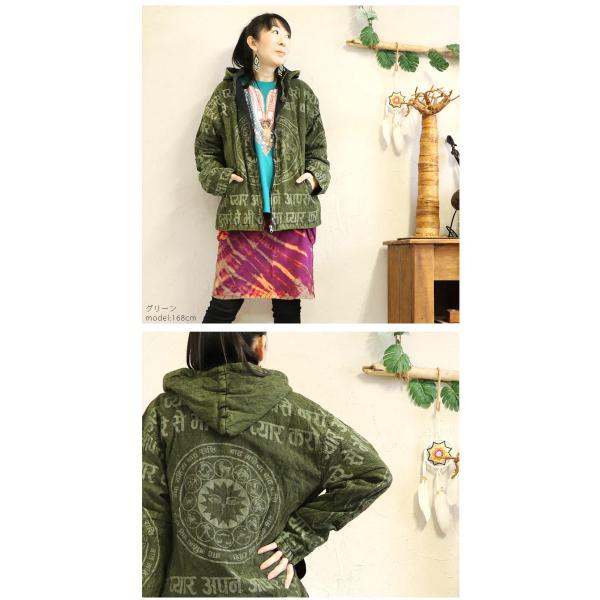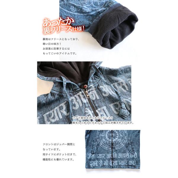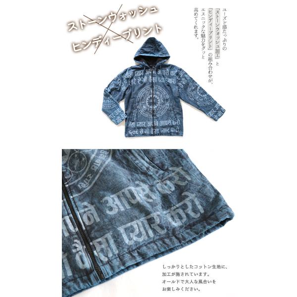 エスニック パーカー ジップアップ ヒンディー フード付き アウター プリント ストーンウォッシュ 防寒 大きいサイズ ビッグ 冬 秋 春