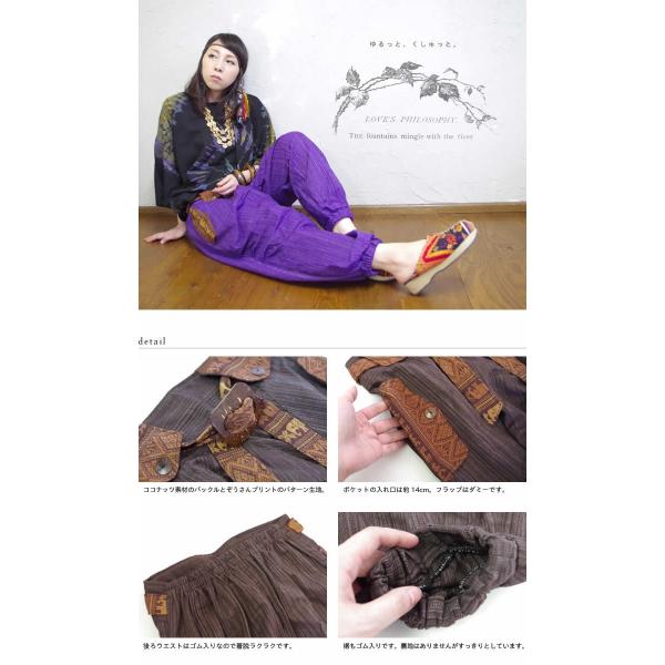 送料無料 エスニック サルエルパンツ アラジン ストライプ ココナッツ ベルト ファッション レディース 民族 アジアン ボヘミアン (3)