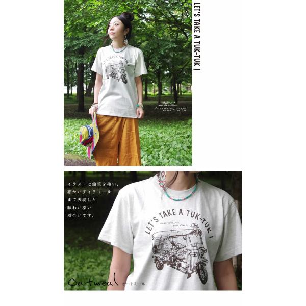 エスニック Tシャツ カットソー トップス 半袖 トゥクトゥク 乗り物 タイ 三輪タクシー ファッション メンズ レディース ユニセックス ゆったり (1.5)