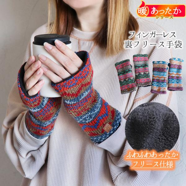 手袋 指なし 手ぶくろ エスニック アジアン ファッション グローブ フィンガーレス デミグラブ メンズ レディース フリース 柄 ウール 毛糸 ニット 暖かい