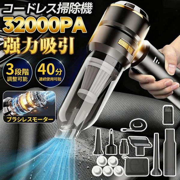 【限定5380円】ハンディクリーナー 32000pa 強力 ミニ掃除機 車用掃除機 ブラシレスモーター 充電式 吸引力 コードレス 小型 軽量 自宅 車内両用 家庭用 静音