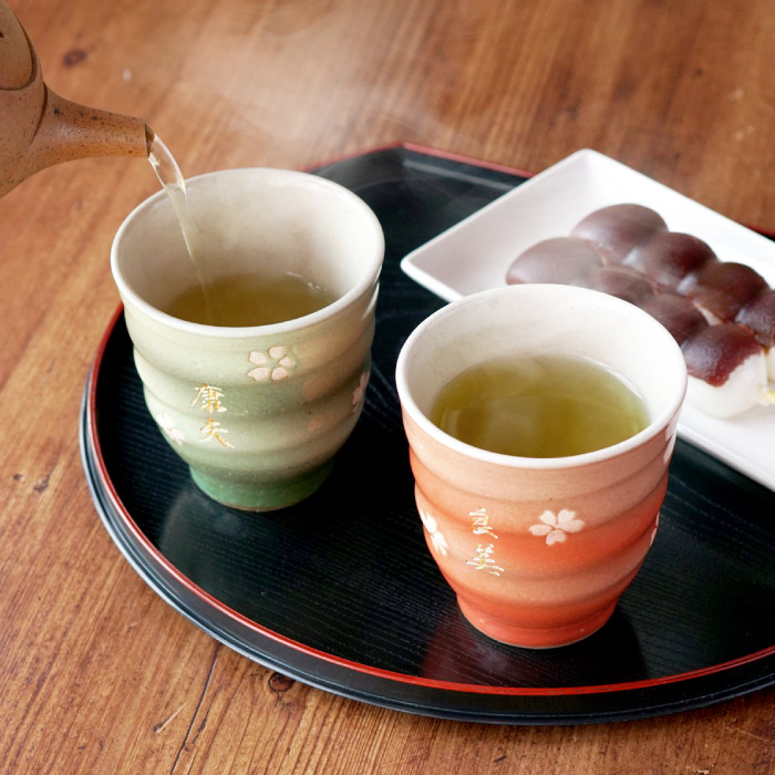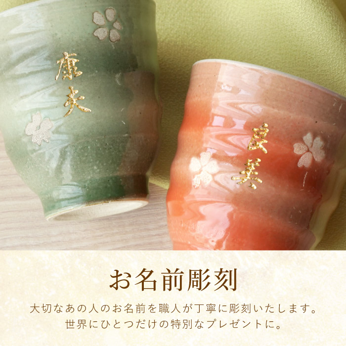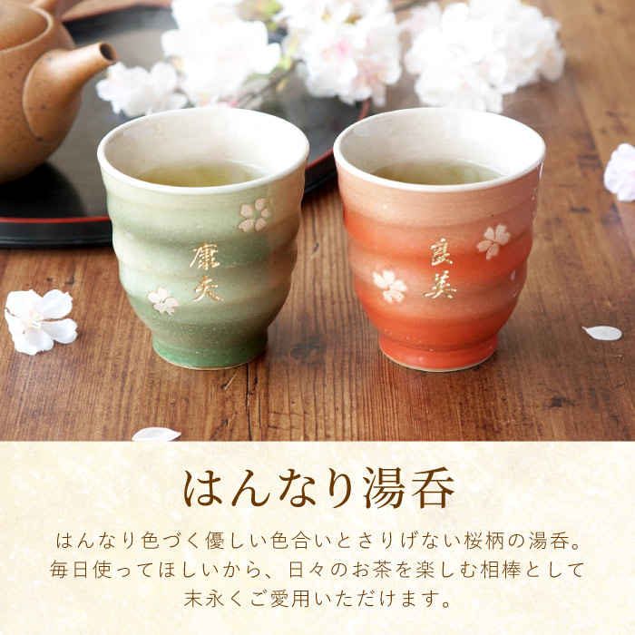 プレゼント 名入れ 名前入り ギフト 美濃焼 はんなり 湯呑み茶碗 夫婦 ペアセット 湯飲み おしゃれ 桜 古希のお祝い 記念品 誕生日 父 母 孫