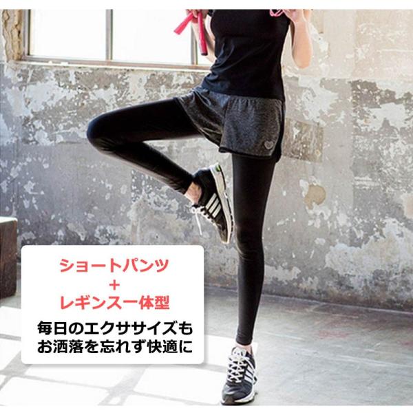 スポーツウェア レディース パンツ ランニングウェア トレーニングウェア ショートパンツ一体型 レギンス ヨガ スポーツ ウェア 美脚 可愛い ウエア