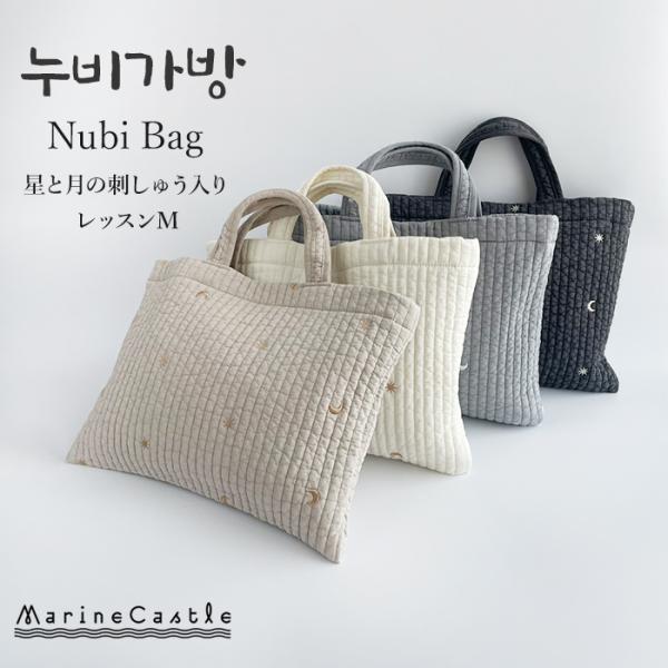 ヌビバッグ レッスンバッグ M イブルバッグ ヌビ バッグ イブル お稽古バッグ マチなし 韓国 刺繍 星 月 習い事 レッスン サ 爆買