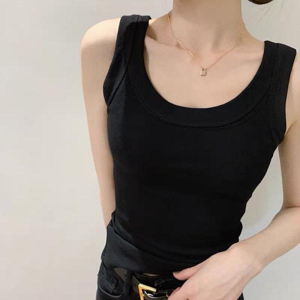 ブラトップ タンクトップ カップ付き リブ 盛れる 締め付けない 楽(3)