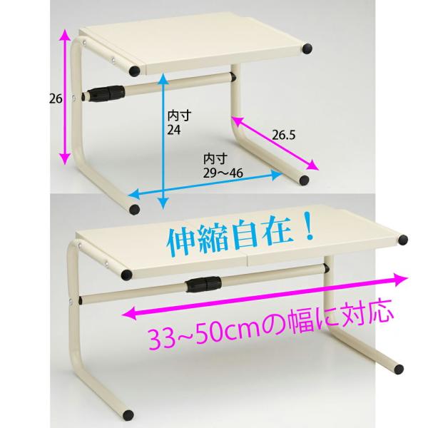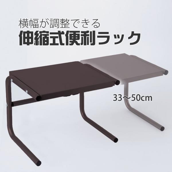 伸縮式便利ラック トースターラック 台所 キッチン リビング 収納棚 伸縮可能 レンジ台 茶 ブラウン アイボリー シルバー おしゃれ お洒落 すっきり スッキリ 収納 棚 省スペース 小物置き パソコン台 サイズ調整可 横幅伸縮 新生活応援 一人暮らし