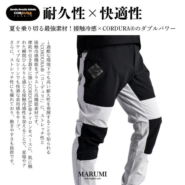 CORDURA〓接触冷感素材採用で、ひんやり涼しく、耐久性・ストレッチ性も抜群。摩耗や引き裂きに強く、夏場やアクティブなシーンでも快適。