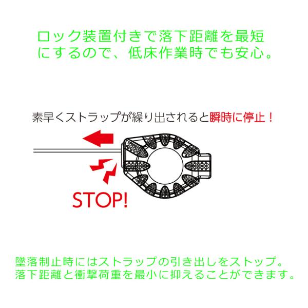 【ロック装置付きで落下距離を最短にするので、低床作業時でも安心】