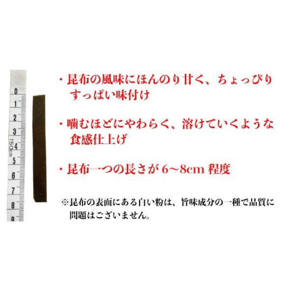 北海道産の昆布の持つ風味を逃さず、ほんのり甘く、ちょっぴりすっぱい味付け。