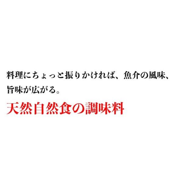 料理にちょっと振りかければ、魚介の風味、だしの旨味が増します。