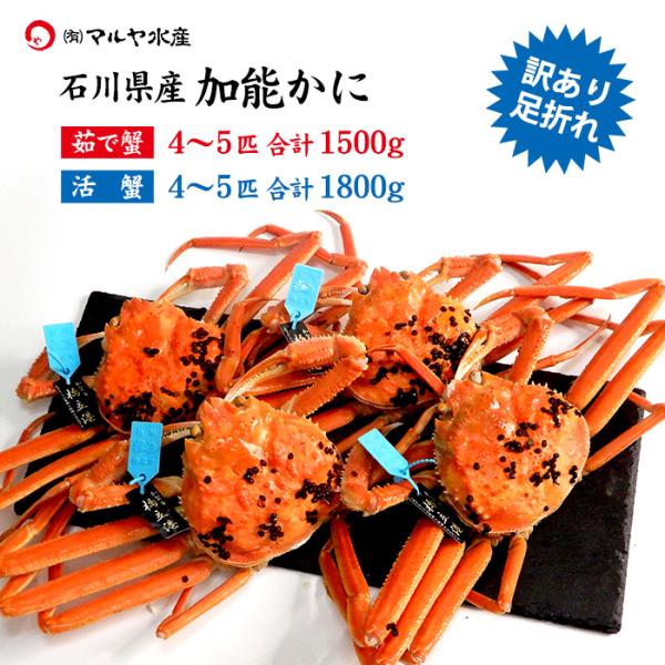 蟹漁解禁 カニ 訳あり かに 蟹 ズワイガニ ずわい蟹 加能かに 訳あり足折れ 石川県産 合計1.5kg 4〜5匹 青タグ付き 茹で蟹 活蟹 生カニお届け可能 送料無料