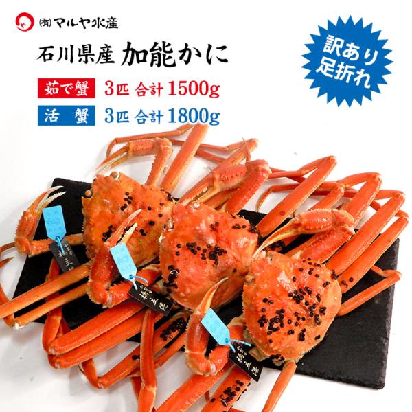蟹漁解禁 カニ かに 蟹 ズワイガニ ずわい蟹 加能かに 訳あり 足折れ 石川県産 3匹 合計1.5kg以上 青タグ付き 茹で蟹 活蟹 生カニお届け可能 送料無料