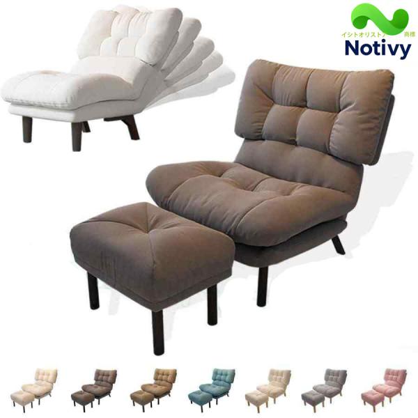1人掛けソファー 一人用ソファー ハイバック リクライニング(5段階) ソファベッド カウチ 高座椅子 ルームチェア リクライニングチェア オットマン付き 木脚/鉄