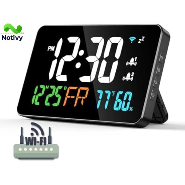 wi-fi時計 デジタル目覚まし時計 特大文字 温度と湿度 カレンダー 週 4 段階の明るさ 耐久性 取り付け簡単 WiFi デスクトップ時計カレンダー インテリジェント温