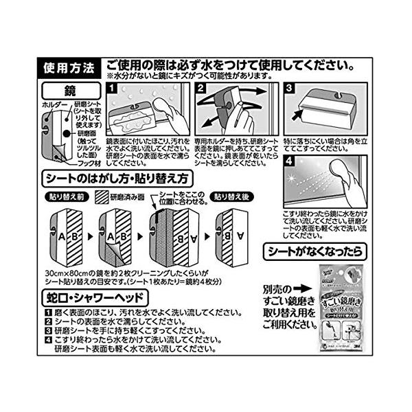 取替用シート・すごい鏡磨き 通常 取替用シート ・7.5×14.8×0.2cm・内容量:研磨シート2枚・材質:研磨シート(ポリエステル、酸化アルミニウム)・原産国:日本・ブラント名: スリーエム(3M)