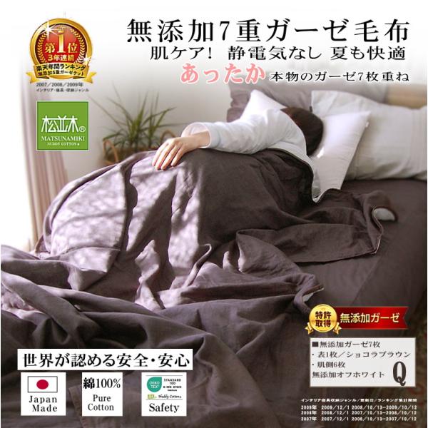 7重 ガーゼ綿毛布 クイーン 210×210cm ブラウン無添加ガーゼ ガーゼケット 吸水速乾 綿100% 日本製 松並木 敏感肌 速乾 丸洗いOK エコテックス