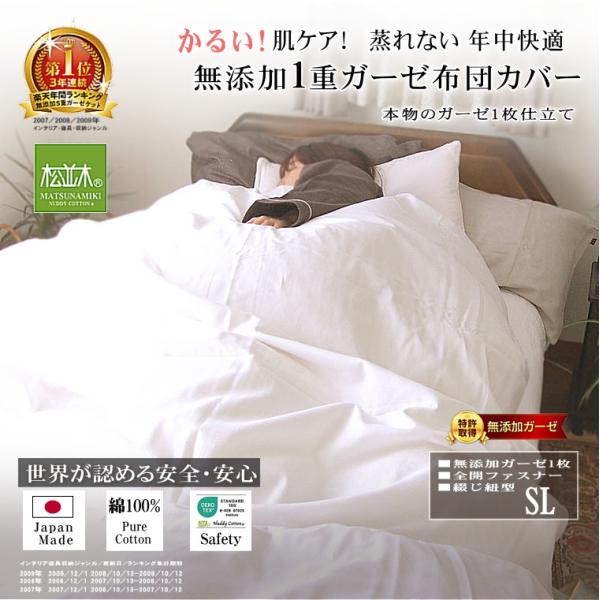掛け布団カバー シングルロング 150×220cm 綿100% 軽い 肌に優しい元祖無添加ヌーディコットン1枚ガーゼ 松並木 日本製 エコテックス 敏感肌