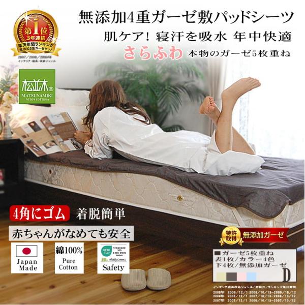 敷きパッド ガーゼ シーツ ダブル 140×210cm 4角ゴム 4重 カラー4色ガーゼ ベッド 敷きパット 吸水速乾 綿100% 日本製 松並木 敏感肌丸洗いOK エコテックス