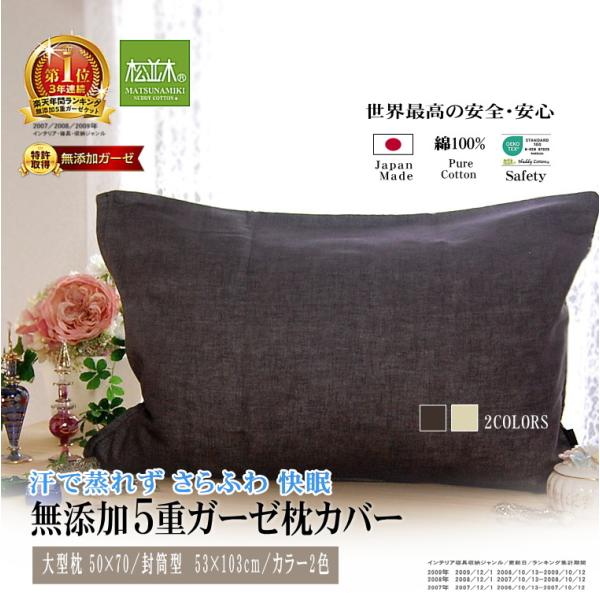 枕カバー 53×103(50×70用)封筒型 無添加ヌーディコットン5重ガーゼ 2色 ファべ社など 吸水速乾 綿100% 日本製 松並木 エコテックス認証 敏感肌 アトピー