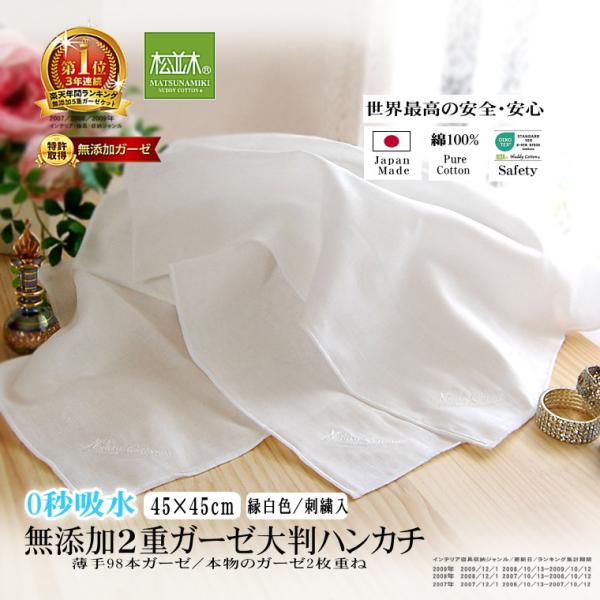 ハンカチ 大判 45×45cm 肌に優しい元祖無添加ヌーディコットン2重ガーゼ 3枚セット 綿100% 日本製 松並木 エコテックス認証 敏感肌 レディース メンズ