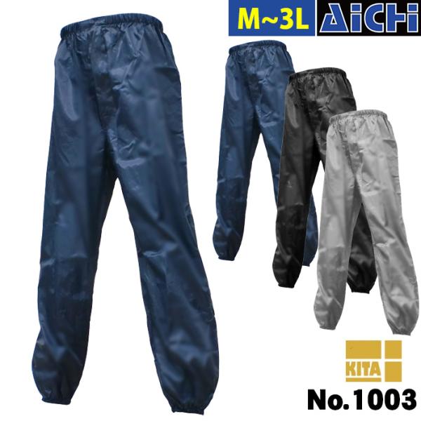 [メール便-送料無料] KITA 喜多 ヤッケ 1003 裾ゴム入り ポリエステル パンツ M 〜 3L | 前開き 裾ゴム ズボン 撥水 風よけ ポケット コンパクト 大きいサイズ