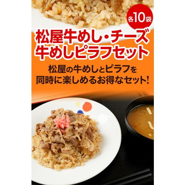 (メーカー希望小売価格10500円→5280円) 牛丼 牛丼の具 松屋牛めし・チーズ牛めしピラフセット 各10袋 お取り寄せ 仕送り 業務用 食品 おかず お弁当 冷凍