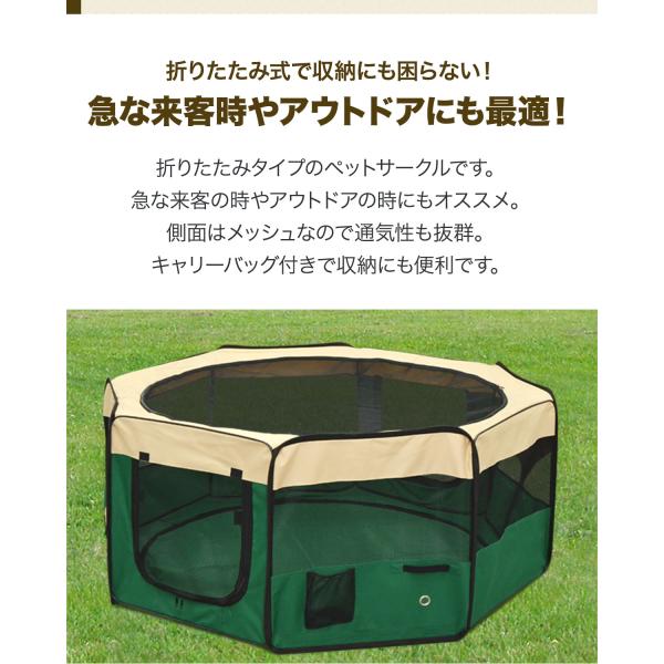 急な来客時やアウトドアにも急な来客時やお出かけ先・アウトドアに最適な折りたたみ式のペットサークルです。