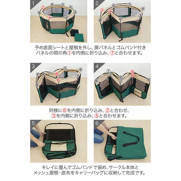 ペットサークル ペットハウス メッシュ 折りたたみ 150x62cm 犬用 中-大型犬 XLサイズ 八角形 室内プレイ ソフトケージ 仕切り 軽量 猫 1年保証 送料無料