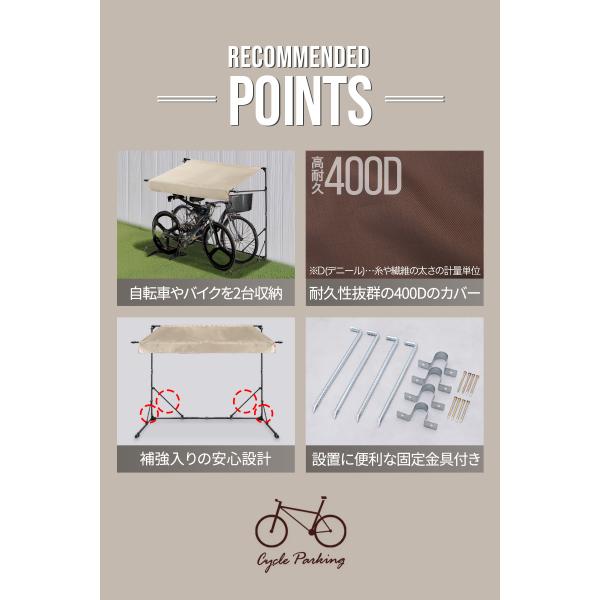 自転車置き場 屋根 サイクルガレージ 2台用 Mサイズ 幅190cm 奥行106cm サイクルパーキング 折りたたみ 日よけ 雨よけ オーニング UVカット 1年保証 送料無料