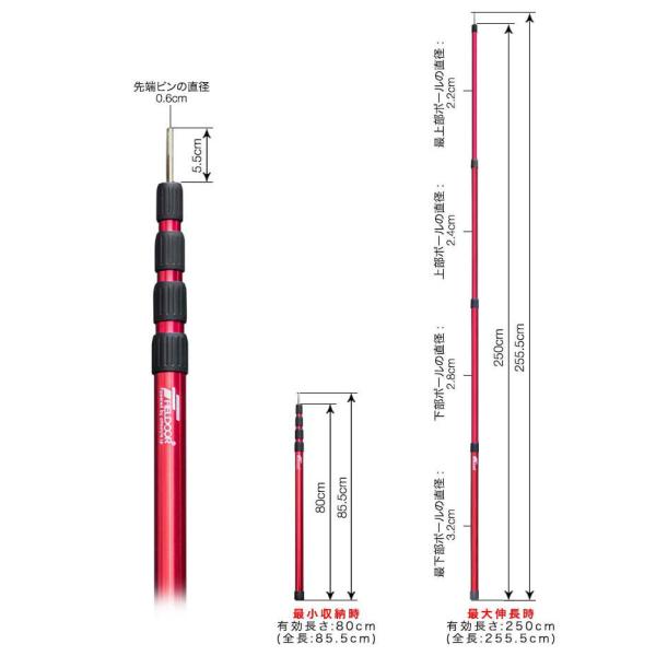 アルミテントポール スライド伸縮 直径32mm 80〜250cm 2本セット