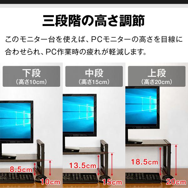 ヤフー1位 モニター台 机上台 幅60cm 2段 モニタースタンド 奥行25cm x 高さ 10cm / 15cm / 20cm 高さ調整 3段階 キーボード 収納 木製 木目 送料無料