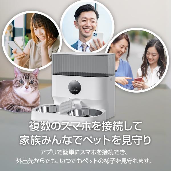 猫 自動給餌器 2匹 カメラ付き多頭飼い 犬 Wi-Fi接続 ペットフィーダー 大容量5L ドライフード 餌やり器 ステンレストレイ PSE認証アダプタ PL保険加入商品