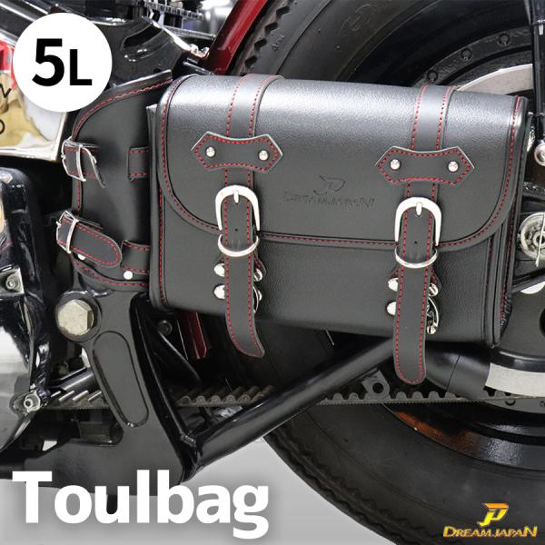バイク ツールバック ワンタッチ型 角型 ドリンクホルダー 、内ポケット付! (5L)ブラック ツールバッグ PU合皮【Dream-Japanオリジナル】
